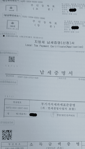 서류 준비는 생각보다 간단했습니다. 주민센터 무인발급기를 이용해 등본, 초본, 사업자등록증을 빠르게 발급할 수 있었고, 발급 비용도 400원 정도에 불과했어요.