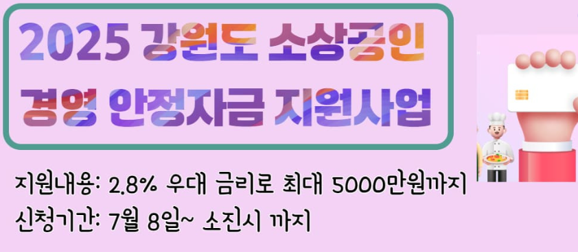 강원도에서도 최대 5천만원이 지원되는 "소상공인 안정자금"을 진행하고 있는데요!
