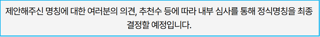 - 공모 주제: 플랫폼의 취지에 어울리면서 쉽고 부르기 편한 이름