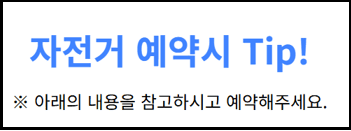 예약 방법 | 온라인 예매 시 자전거 선택 + 결제 |