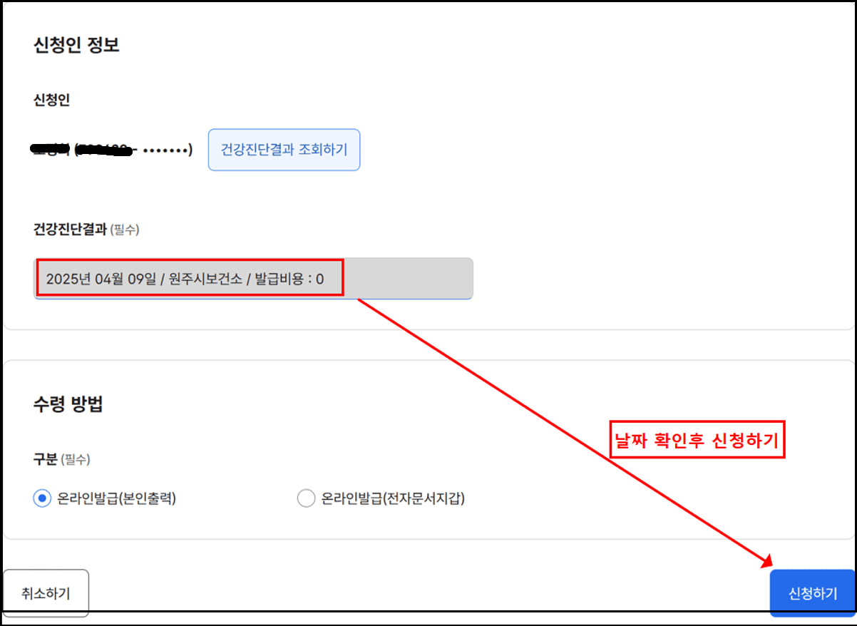 핵심은 **정확한 접수일과 보건기관명** 입력이며, 이후 신청과 출력은 단 5분이면 충분합니다.