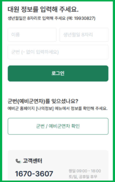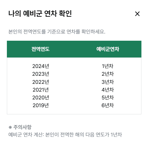 혹시 군번/예비군연차를 모른다면 아래 페이지에서 바로 확인 가능합니다.