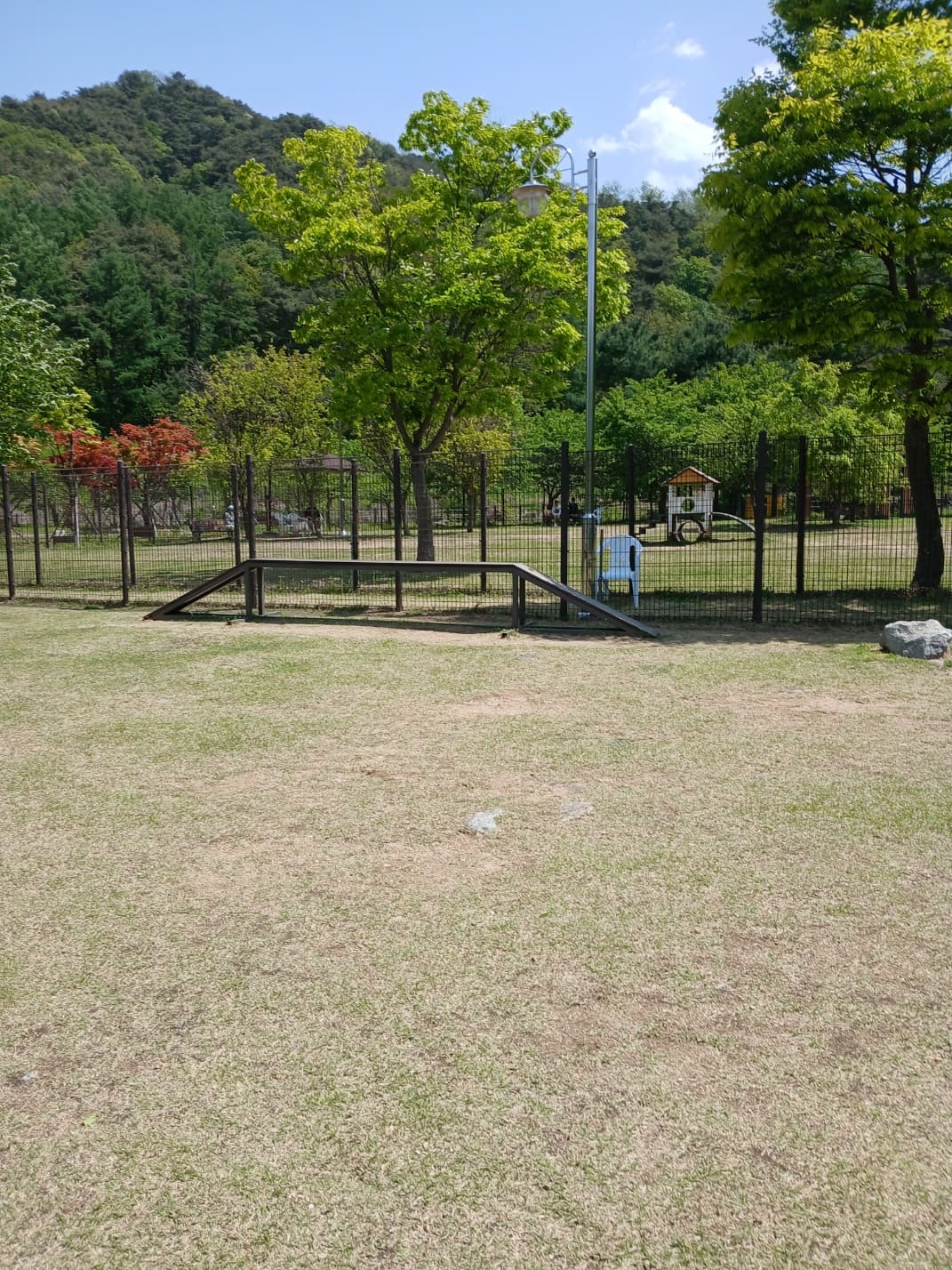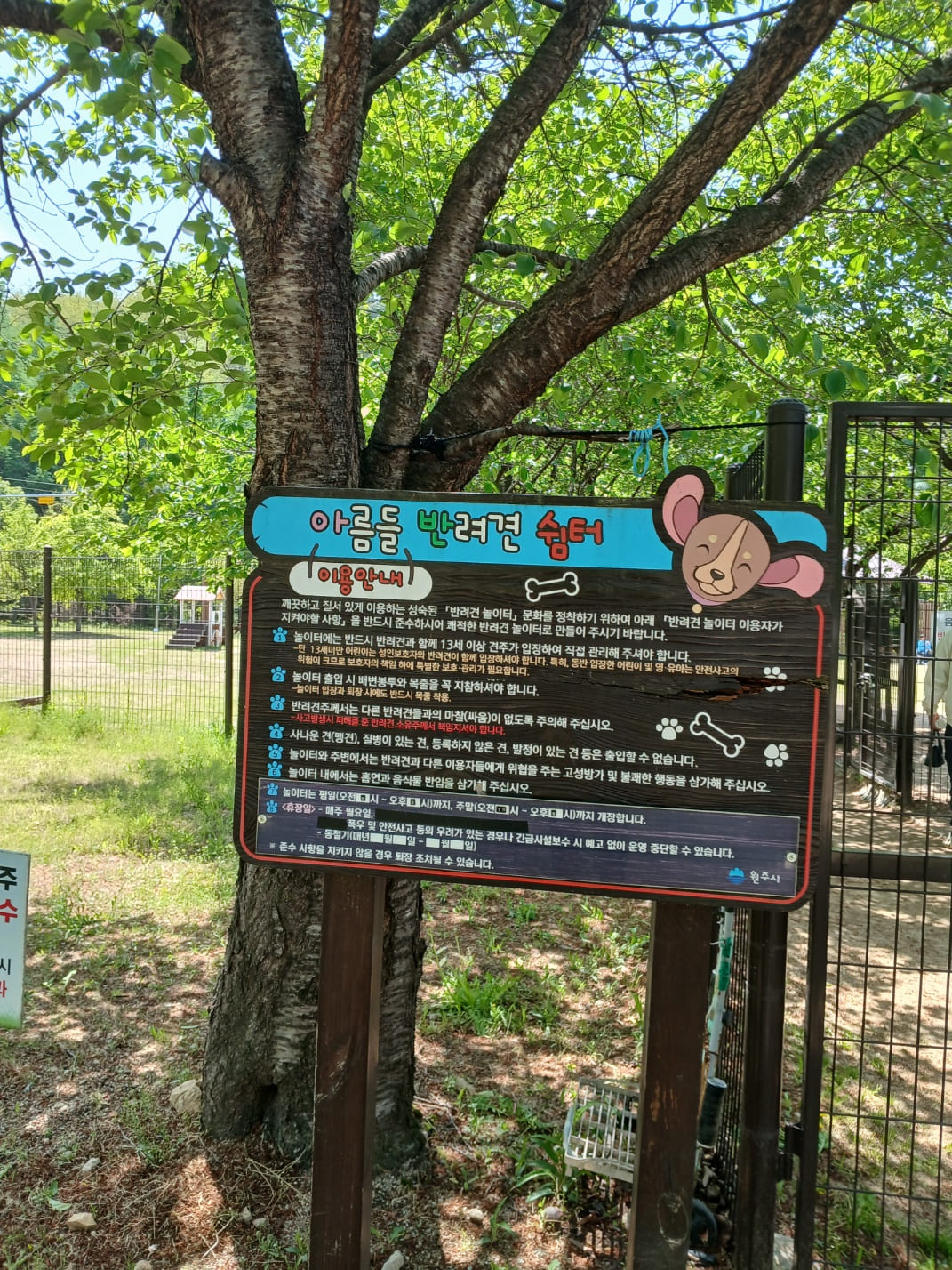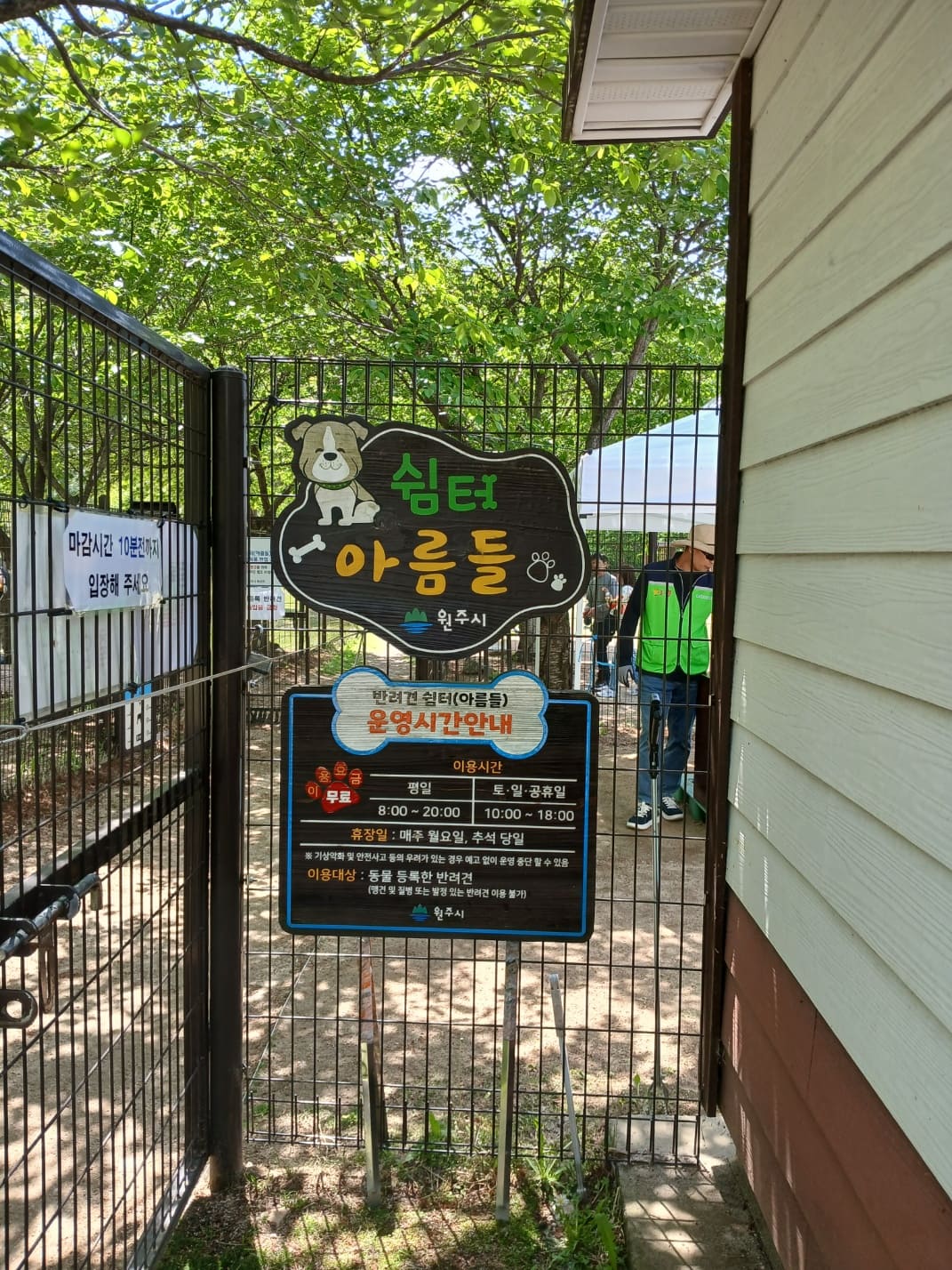 아름들 쉼터 내에는 음수대, 벤치, 화장실(화장실 위생 상태는 쏘쏘), 그리고 반려인 휴식 공간이 갖춰져 있어 보호자도 쾌적하게 시간을 보낼 수 있습니다.