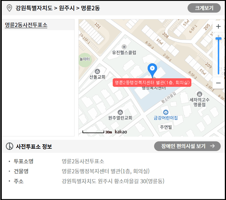 | 판부면 | 판부면사전투표소 | 원주시 가족센터 2층, 203호 | 매봉길 16-18 |