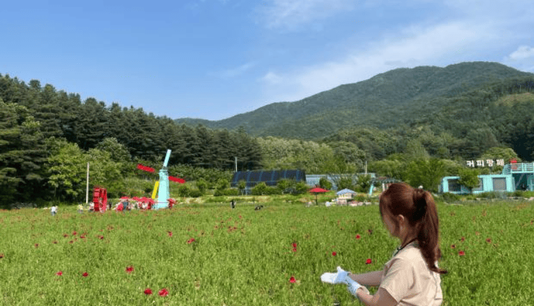 300평에서 시작된 꽃밭은 현재 12,000평 이상으로 확장되어, 전국에서도 보기 드문 꽃양귀비 군락지를 이루고 있습니다.