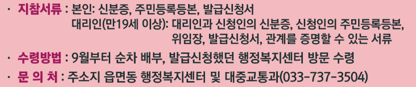 문의처 : 주소지 읍·면·동 행정복지센터 / 원주시청 대중교통과: 033-737-3504