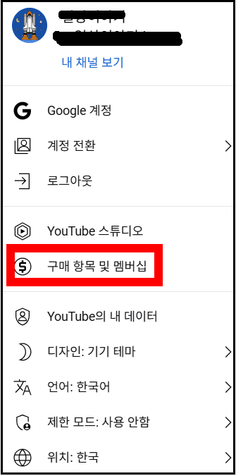 - 오른쪽 상단 프로필 아이콘 → [구매 및 멤버십] 선택