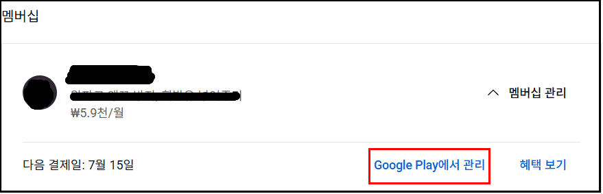 - 정기결제 중인 서비스(프리미엄, 멤버십 등) 옆의 [멤버십 관리] 클릭