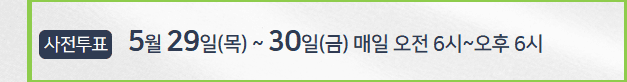 유권자의 참여가 민주주의를 움직입니다. 5월 29일(목)~30일(금), 오전 6시부터 오후 6시까지