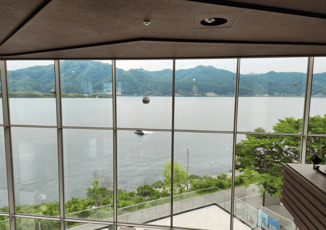 여유롭게 커피를 마시며 의암호의 고요함을 느끼고, 삼악산 케이블카의 여운을 이어가는 하루.