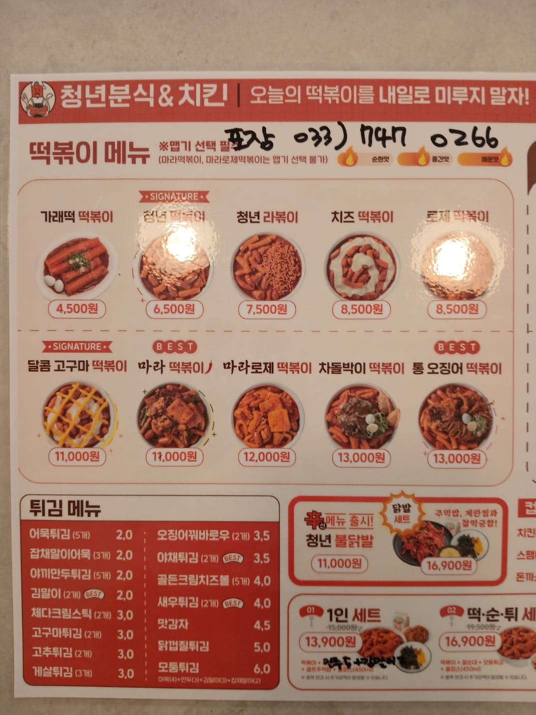 다른 도시는 이미 여러 지점이 있는 청년분식, 드디어 원주에도 생겼다고 해서 3월 말쯤 다녀왔어요.