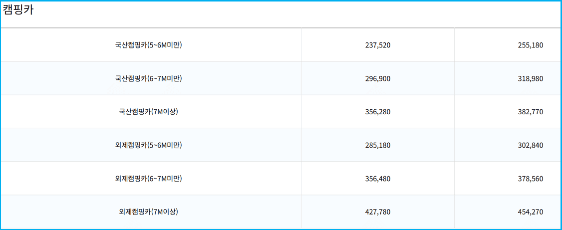 캠핑카 요금표