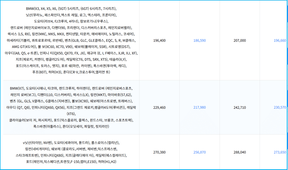✔ BMW 3시리즈, 벤츠 C클래스 등은 171,120원부터 시작합니다.