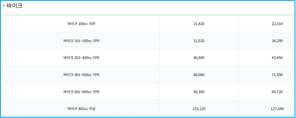 - 🛵 100cc 이하 오토바이: 평일 기준 21,420원 ~
