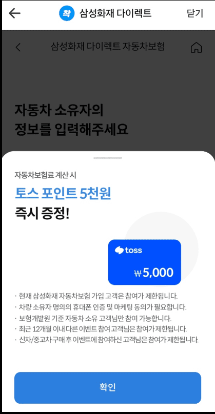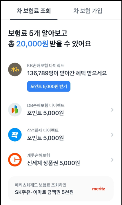 무엇보다 좋은 점은 보험 견적만 받아도 보험사당 5,000원씩 포인트가 지급된다는 점 인데요!