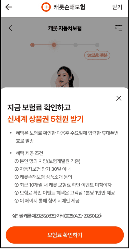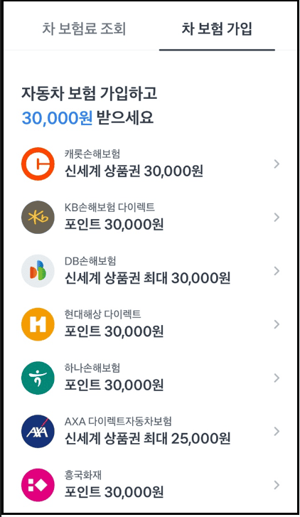 KB손해보험, DB손해보험, 삼성화재, 캐롯손해보험 등 최대 5개 보험사에서 견적을 받아 총 2만원까지 적립이 가능합니다.