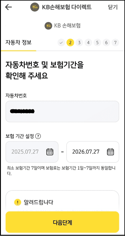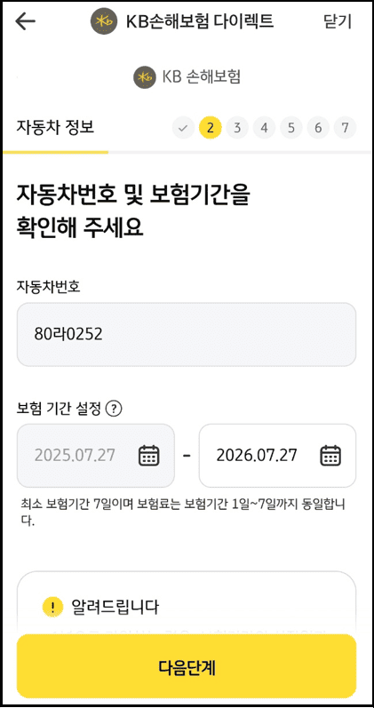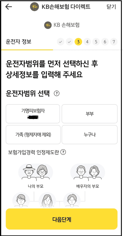 KB손해보험 다이렉트 자동차보험 가입 절차입니다.