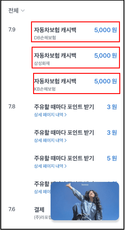 실제로 삼성화재, 캐롯손해보험, DB손해보험 등은 모바일 주유권, 신세계 상품권, 포인트로 보상해주고 있어요.