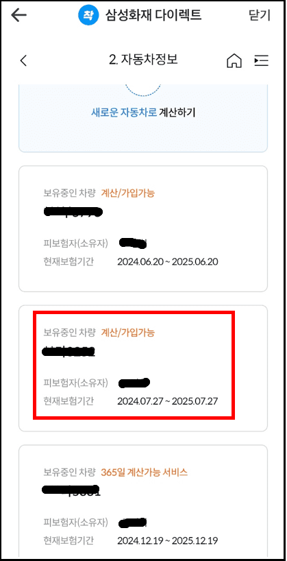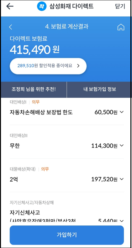 삼성화재 다이렉트 자동차 보험 가입 절차 입니다.