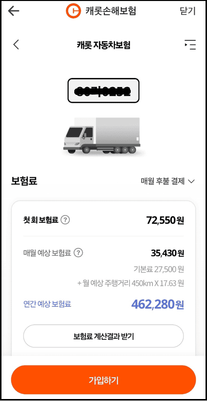 캐롯손해보험 자동차 보험 가입 절차 입니다.