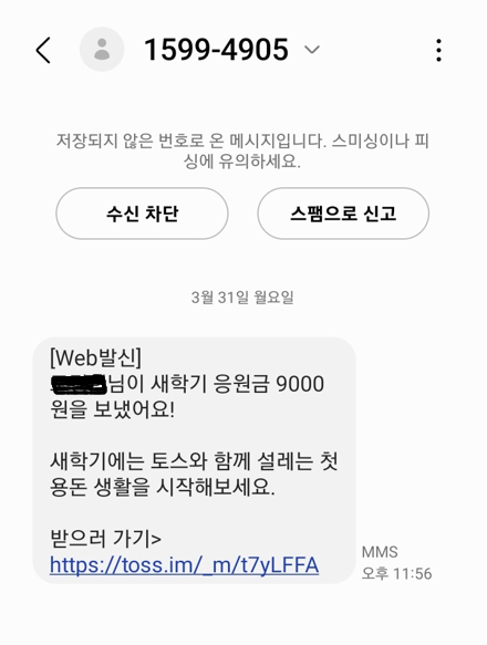 - 용돈 송금: 가입 완료 후 토스로 원하는 금액 송금