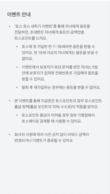 - ✅ 자녀가 토스에 처음 가입하는 경우만 참여 가능