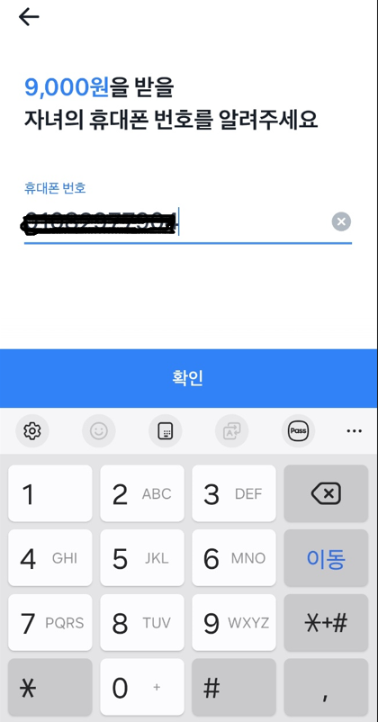 3. 자녀에게 줄 용돈을 많이 담기 4. 용돈을 받을 자녀 휴대폰 입력하기
