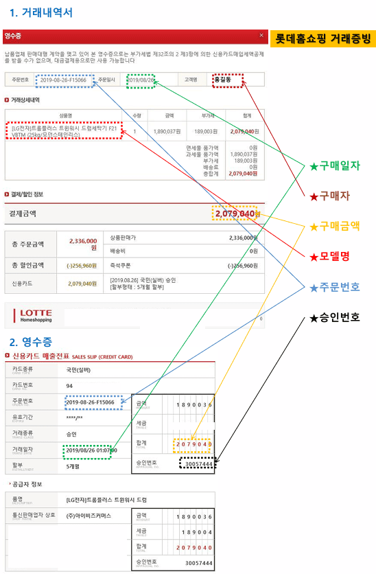 롯데홈쇼핑에서 구매한 경우 아래 절차에 따라 각각의 서류를 준비하시고
