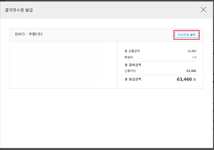 - 방법 2: 동일 경로 → 상단 구매영수증 출력 클릭 → 캡쳐