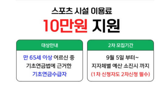 신청 대상은 **기초연금 수급자 중 65세 이상**이며, 해당 주소지의 예산이 확보되어 있어야 신청이 가능합니다. 신청 시에는 반드시 본인 명의의 휴대전화가 있어야 하며, 타인 명의로는 신청할 수 없습니다. 또한, 장애인 스포츠강좌이용권과 중복 수혜는 불가합니다.