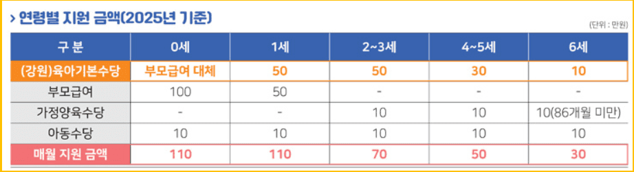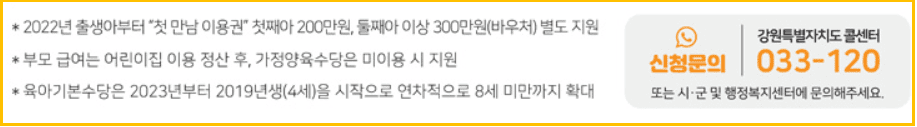 - 지원명: 2025년 강원특별자치도 육아기본수당