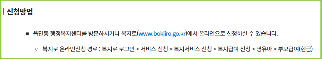 신청은 거주하시는 읍면동 행정복지센터를 방문하시거나 복지로 사이트에서 온라인으로 편하게 신청하실수 있습니다.