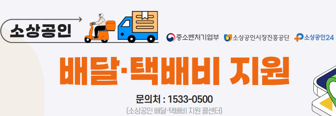 - 신청방법: 온라인 전용 소상공인배달택배비지원.kr 또는 소상공인24