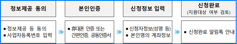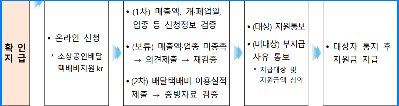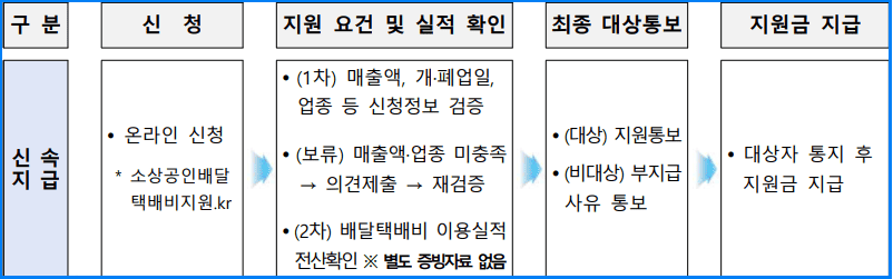 - 신청 제외: 배달·택배가 주업인 업종 및 소상공인 정책자금 제외업종