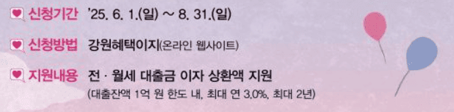 대상 주택: 강원도 내 임차보증금 3억 원 이하의 주택 또는 주거용 오피스텔