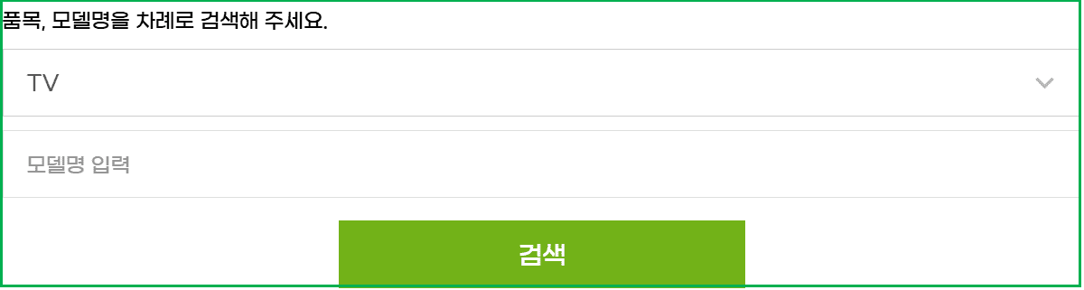 🔎 예시: "LG전자 32LB625B" 라는 모델명을 정확하게 입력해야 검색됩니다.