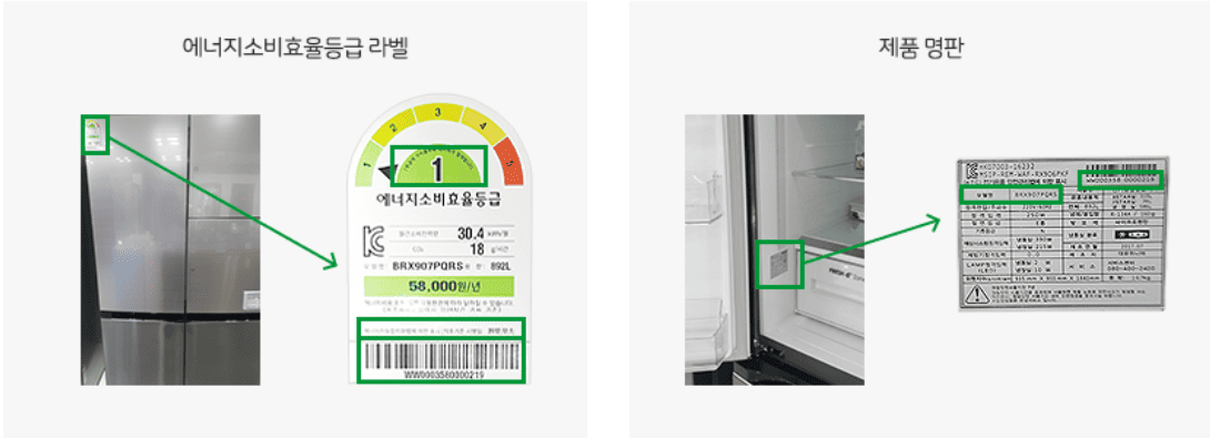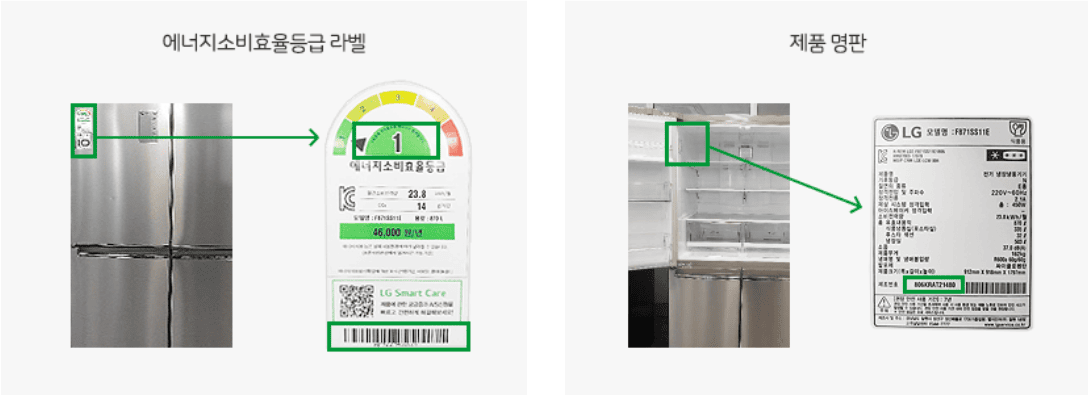 - ✔ 모델명은 제품 박스, 명판 또는 등급라벨에서 확인 가능