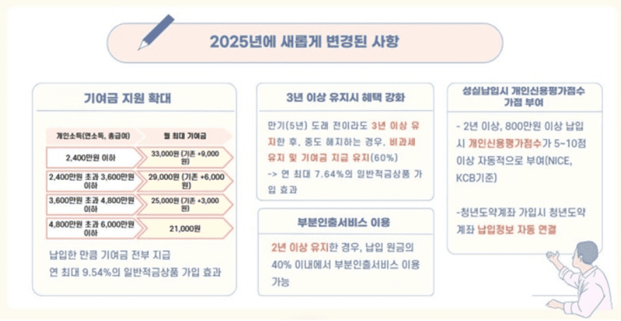 청년도약계좌는 단순한 적금 이상의 가치를 지니는 정책상품입니다. 부분 인출 기능 도입, 중도 해지 시 일부 혜택 인정, 신용점수 향상까지 가능해지며 그 실용성은 점점 더 커지고 있습니다.