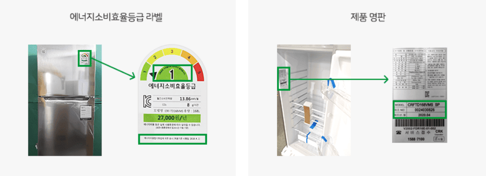예를 들어, 냉장고는 2018년 4월 1일 이후에 효율등급 기준이 바뀌었기 때문에,