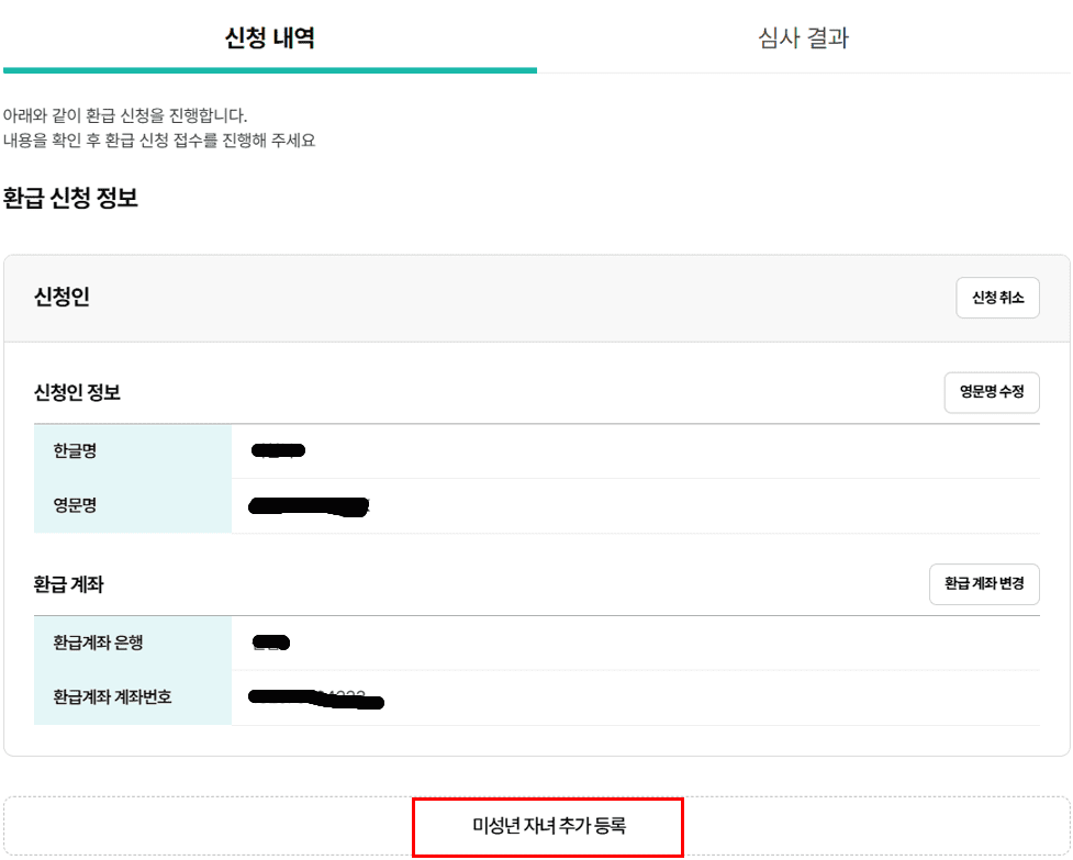 대리 신청이 가능한 자녀의 경우, 부모 계좌로 수령 가능하지만 타인 명의는 허용되지 않습니다.