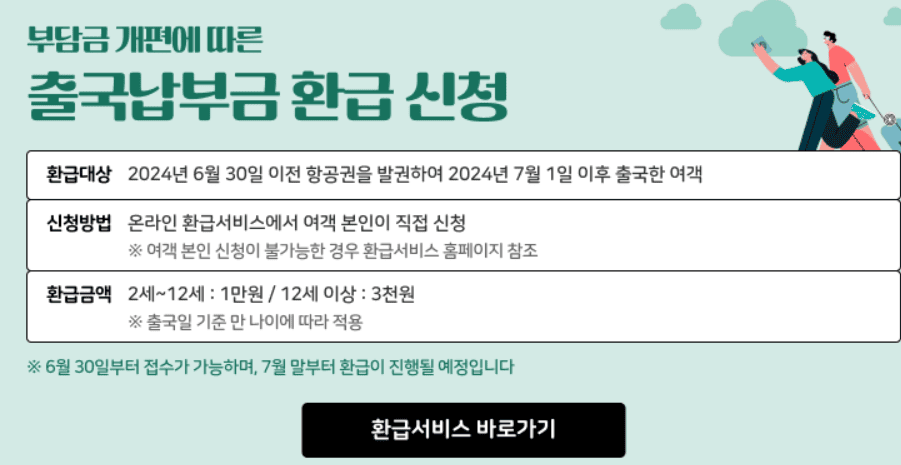 2024년 7월, 출국납부금 제도가 개편되면서 과거 항공권 예매자 중 일부가 과납한 금액을 환급받을 수 있는 제도가 시행되었습니다.