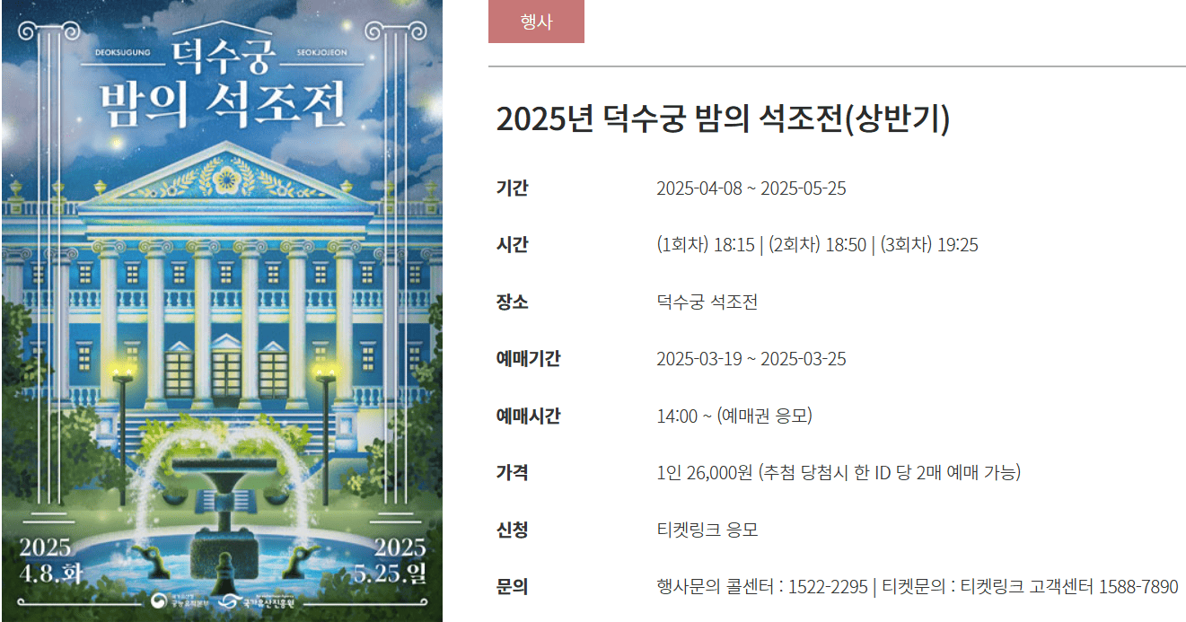 〈덕수궁 밤의 석조전〉은 단순한 전시 관람이 아닌, 궁궐의 시간을 걷고, 느끼고, 마시는 문화 체험입니다.